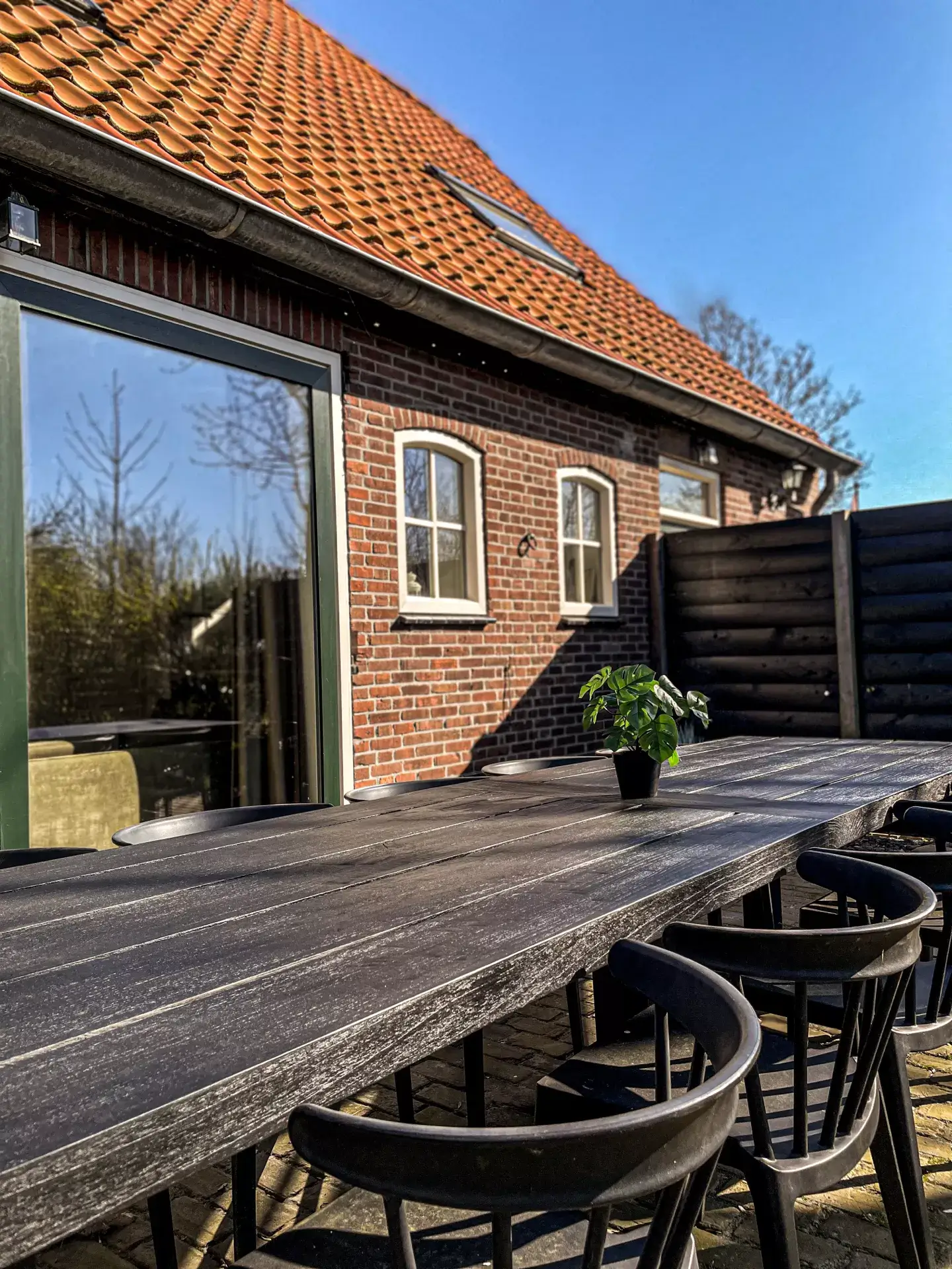Bei schönem Wetter treten Sie durch die Terrassentür hinaus auf die einladende Terrasse. Dort erwartet Sie ein großer Gartentisch für 10 Personen, und in den wärmeren Monaten steht Ihnen auch ein Grill zur Verfügung. Diese charmante Terrasse ist perfekt, um mit Familie oder Freunden zusammenzukommen und die (Abend-)Sonne sowie den Garten zu genießen. In der frischen Texeler Seeluft schmecken Snacks und Getränke gleich noch besser. Besonders schön sind die vielen Schmetterlinge und Vögel, die unseren Hof jedes Jahr wieder besuchen.